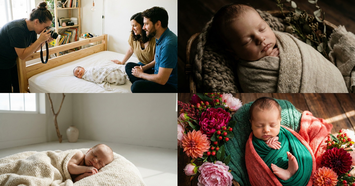 Соберите уютную домашнюю атмосферу: мягкий свет, натуральные цвета и удобный реквизит для красивых, спокойных кадров новорожденных.