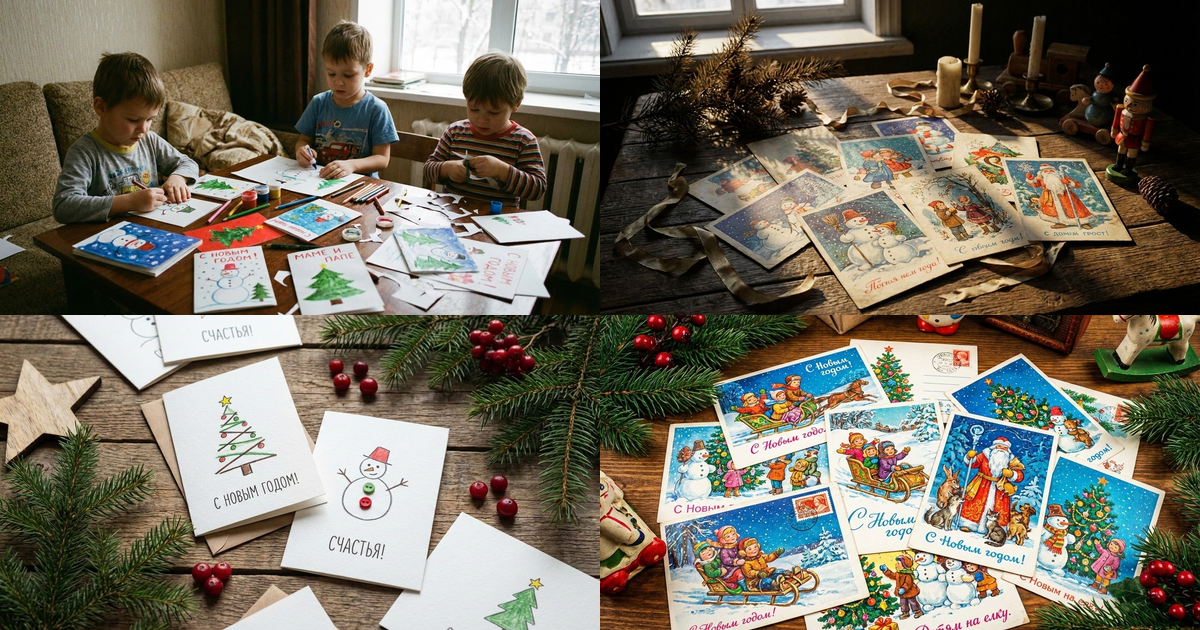 Подборки промптов под стиль: милые зверята, снежинки, елочные мотивы и яркие цвета — чтобы каждая открытка выглядела уникально и печаталась качественно.
