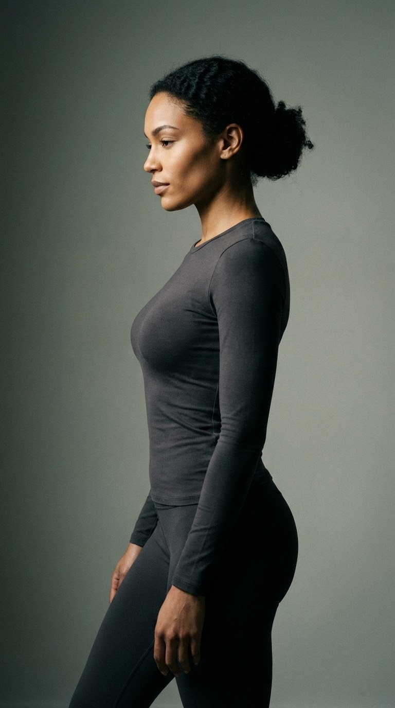 NANO BANANA PROВысококачественный ультра-фотореалистичный портрет в минималистичной студии. Боковой профиль, чистая текстура кожи и уверенная грациозность создают премиум образ для брендинга и модной съемки.