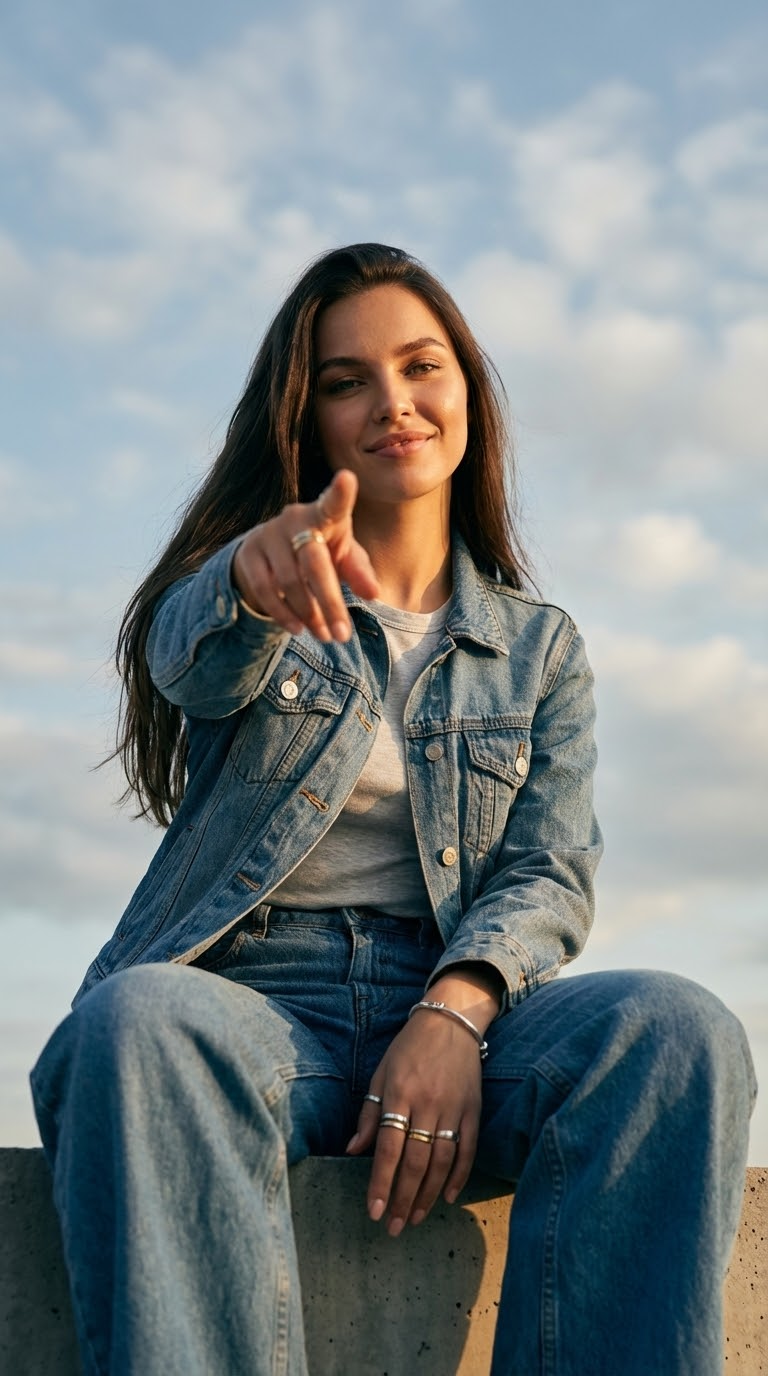NANO BANANA PROФотореалистичный кинематографичный портрет молодой южноазиатской женщины в серой футболке и дениме. Акцент на естественную текстуру кожи, тёплый золотой час и дружелюбную улыбку.
