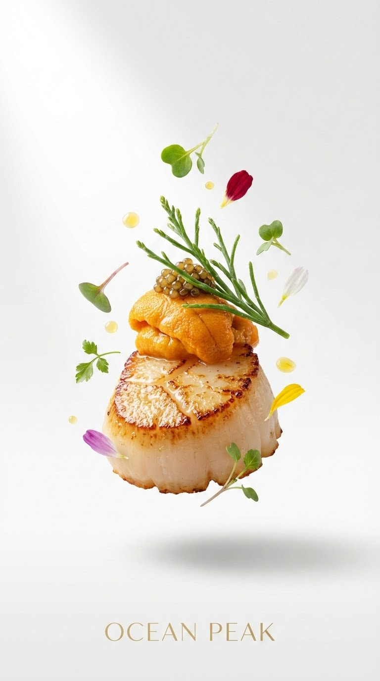 NANO BANANA PROПремиум фуд-фотография на белом фоне с высоким ключом освещения и макро деталями. Элементы блюда парят над поверхностью, создавая чистый современный образ.