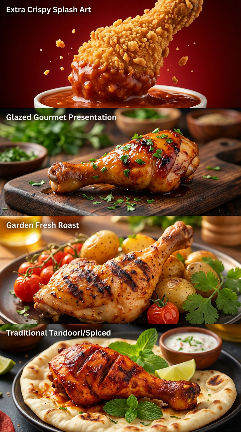 NANO BANANA PROЗолотистая корочка окорочков в макро-кадре с аппетитной подачей и соусом. Идеально подходит для меню, рекламы и кулинарных блогов.
