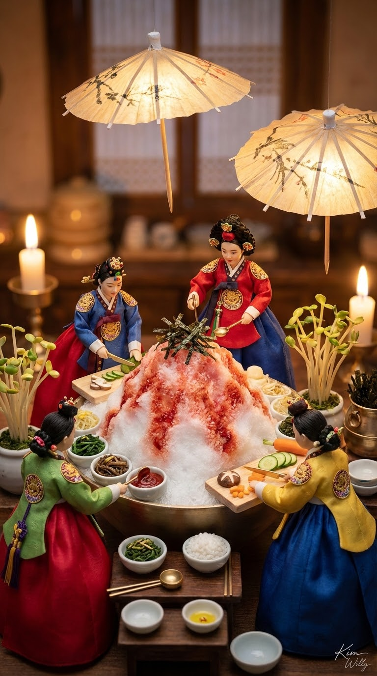NANO BANANA PROСложная миниатюра в стиле корейской кухни с поварами и уютной кухней на заднем плане. Детализация посуды, ингредиентов и украшений создаёт волшебную атмосферу.