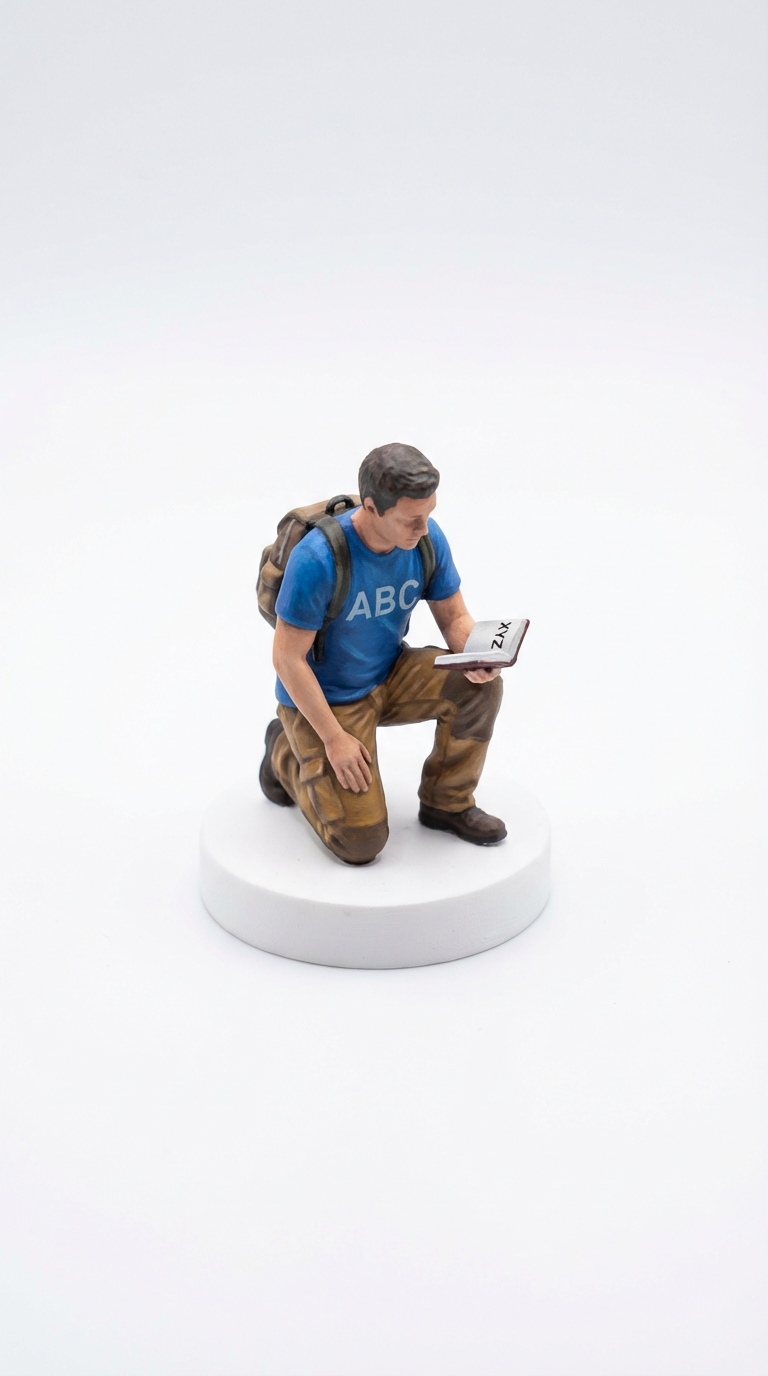 NANO BANANA PROИзометрическая полнотелесная фигурка персонажа в минималистичной сцене на белом фоне. Детальная и реалистичная миниатюра подходит для промптов и 4K рендера.