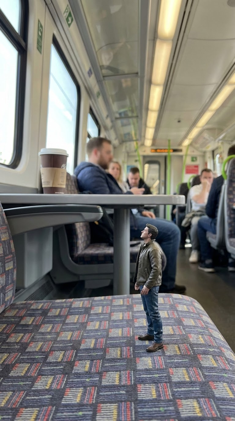 NANO BANANA PROНебольшая миниатюра — фигурка в поезде около 30 см. Отлично подходит для коллекций, диорам и декоративной фотосъемки внутри вагона.