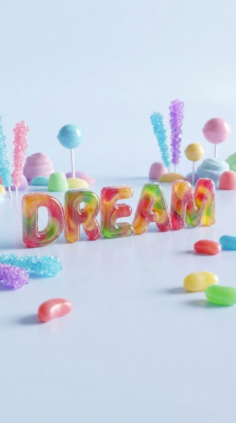 NANO BANANA PROУльтра‑реалистичный 3D рендер слова, превращённого в конфету, с кинематографическим освещением и трассировкой лучей. Мягкие тени, глянцевые детали.