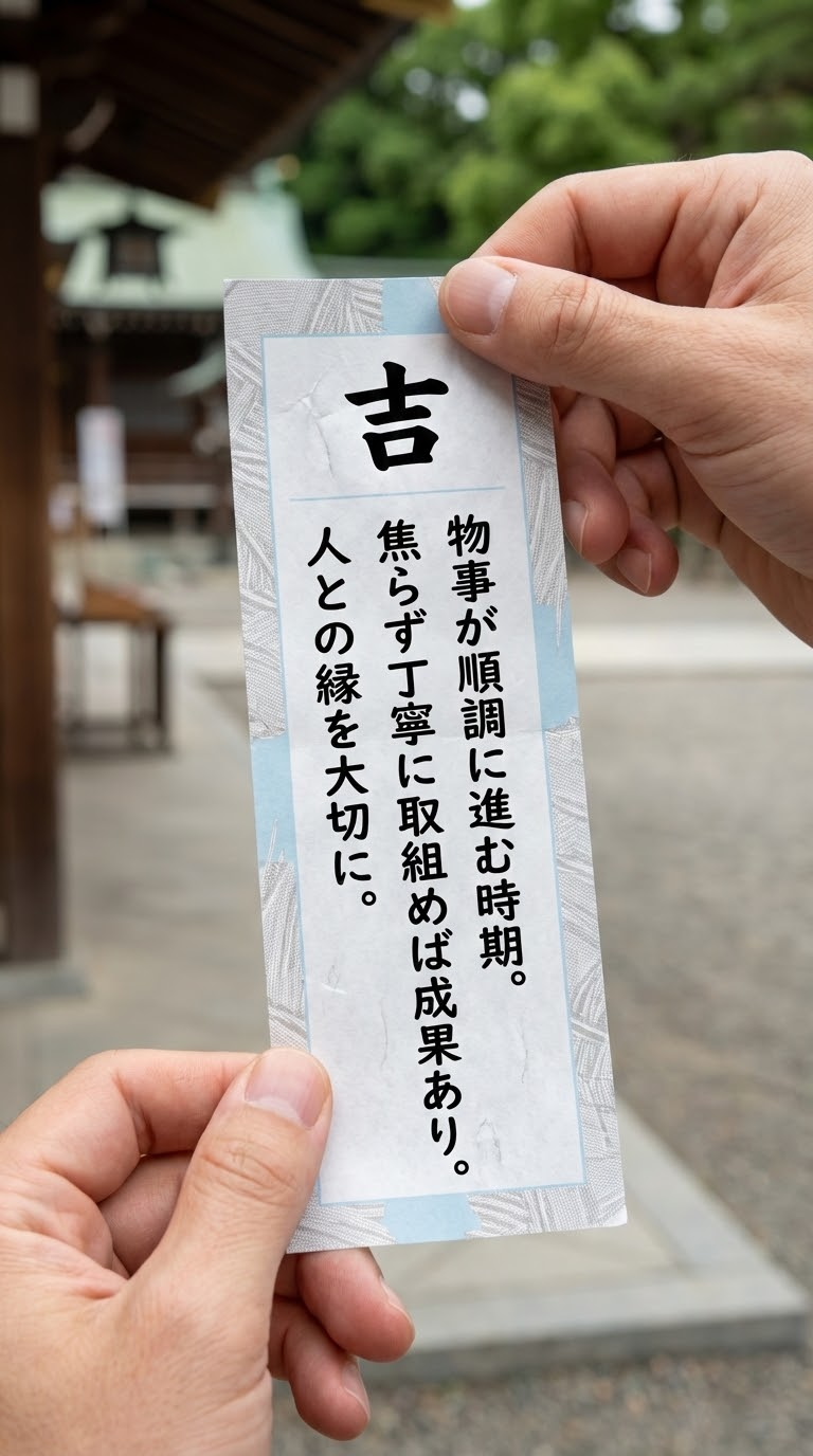 NANO BANANA PROСоздание фотореалистичного омикуji на основе образца. В описании учитываются текстуры бумаги, естественный свет и отсутствие стилизации.