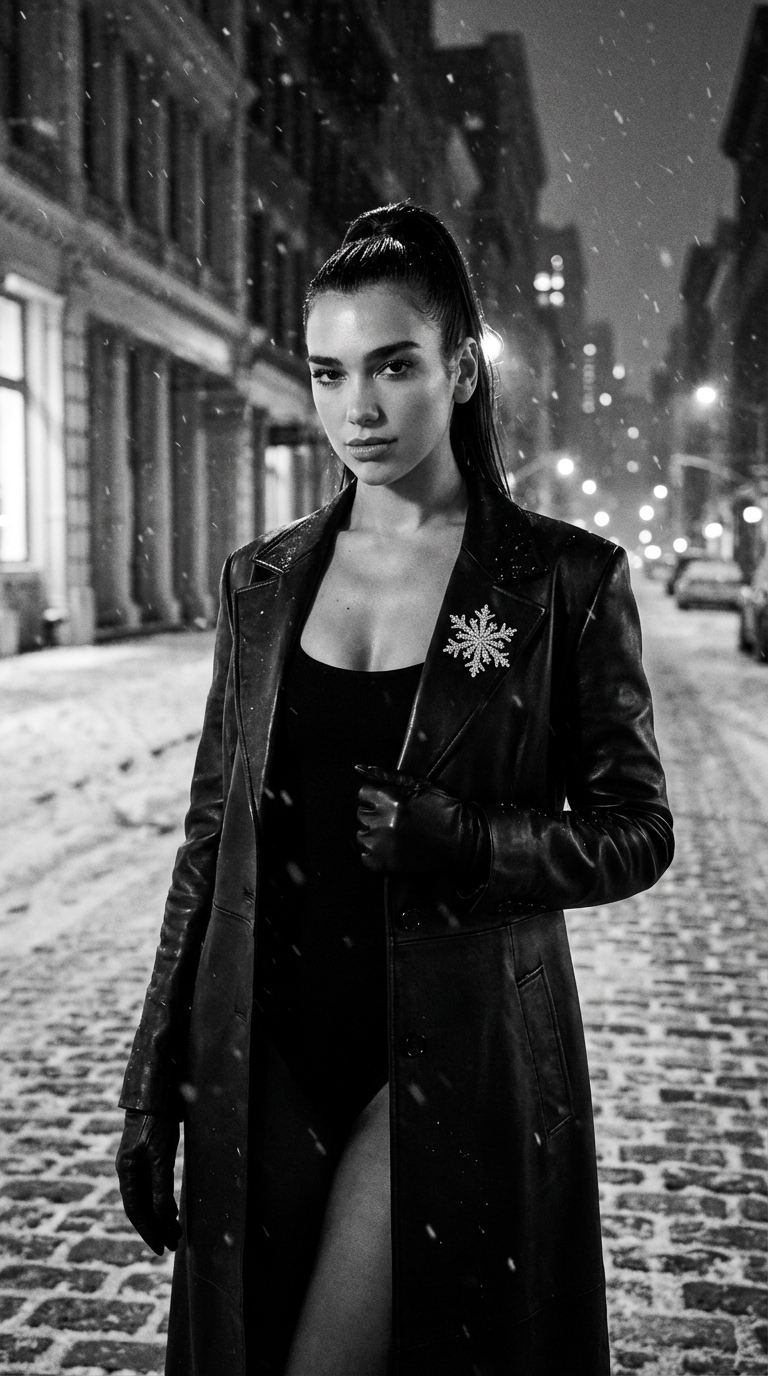 NANO BANANA PROКрупный план лица в ночном монохромном урбан-портрете в стиле редакционной съемки. Модная эстетика сочетается с роскошной городской атмосферой и сильным взглядом.