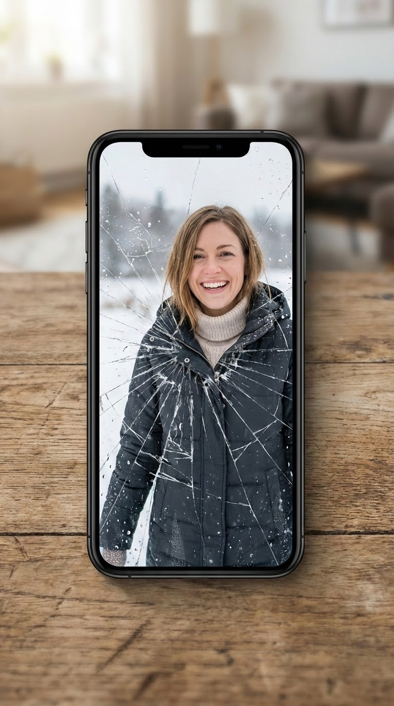 Разбитый экран телефона: сюрреалистичный рекламный кадр
