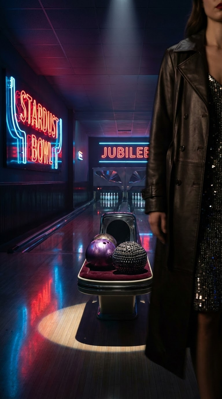 Нео-нуар стиль в неоновом боулинг лаунже