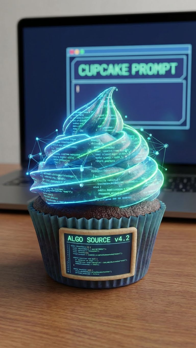 NANO BANANA PROПромпт объединяет тему кекса будущего с образом Илона Маска и алгоритмом, создавая интригующий контент о технологиях и креативности.
