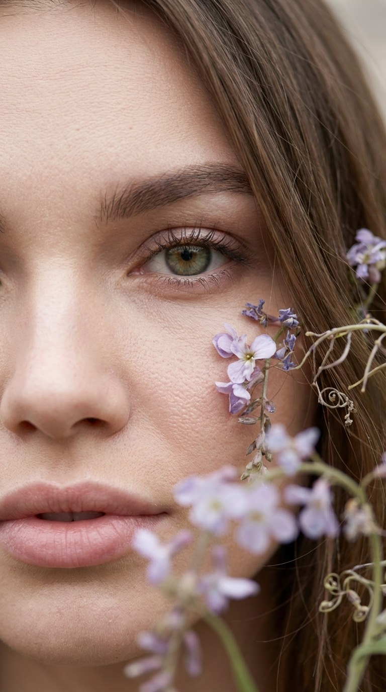 Длинные ресницы и натуральная текстура кожи: макро портрет Fine Art