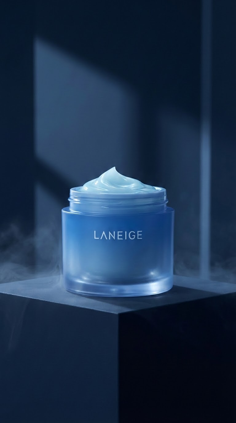 NANO BANANA PROДраматичная съемка роскошной косметики в ночной палитре. Мягкий свет и тени подчеркивают премиум текстуру геля и стеклянную баночку.
