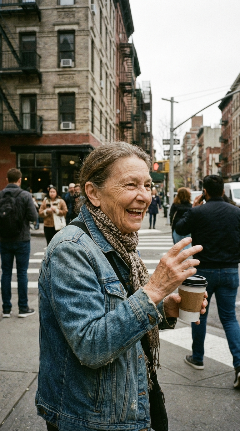 NANO BANANA PROДокументальная уличная съемка в естественном свете: запечатлённый случайный момент на городской улице. Без постановки, с реалистичным стилем, передающий характер людей и города.