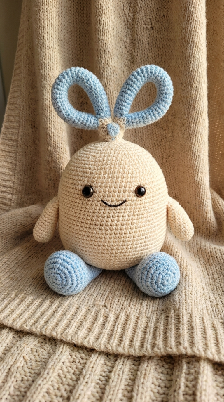 NANO BANANA PROОчаровательная игрушка в стиле амигуруми Scissor Man, связанная из мягкой пряжи. Круглая форма и милые глаза делают её идеальным подарком для дома.